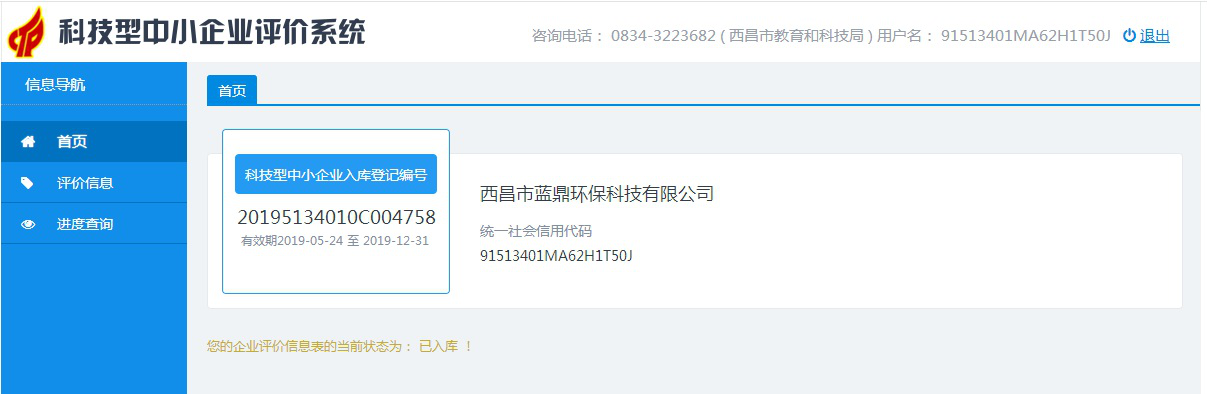 西昌市藍(lán)鼎環(huán)?萍加邢薰、攀枝花市藍(lán)鼎環(huán)?萍加邢薰居5月10日同時(shí)通過四川省科學(xué)技術(shù)廳科技型中小企業(yè)認(rèn)證審核,并在5月10日至5月23日進(jìn)行網(wǎng)上公示,年5月24日兩公司均公示合格獲得科技型中小企業(yè)認(rèn)證入庫編號(hào)。