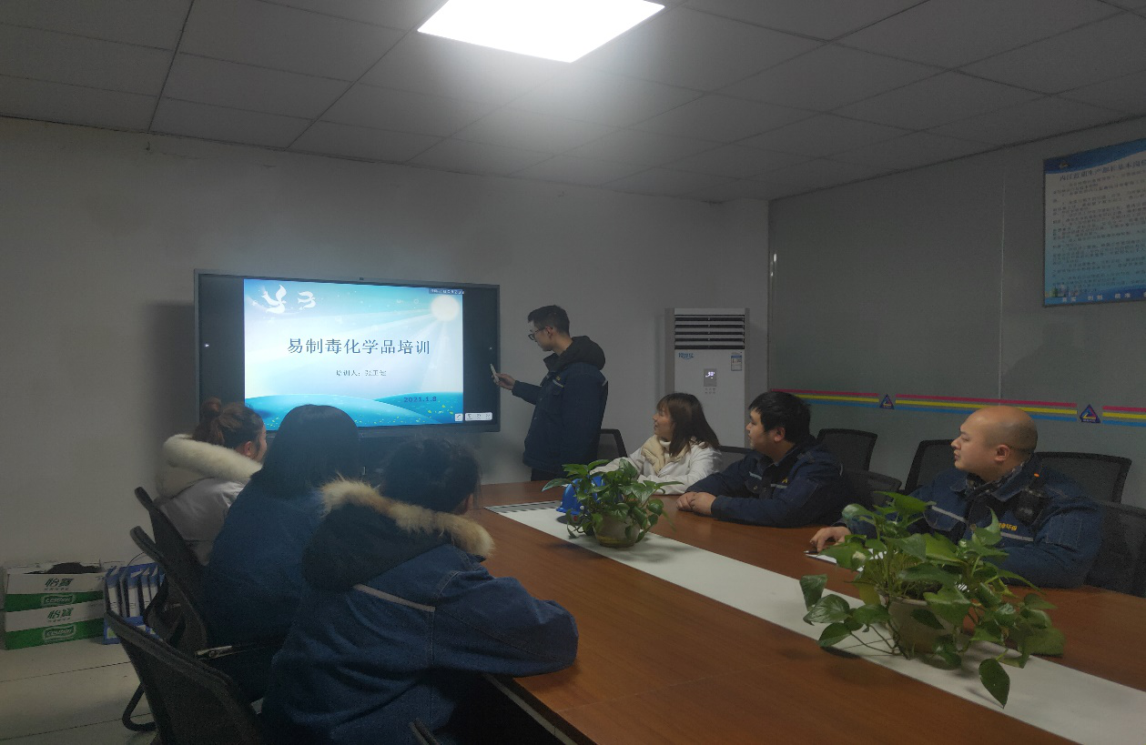 2020年12月24日威遠(yuǎn)縣公安局禁毒大隊(duì)對(duì)內(nèi)江藍(lán)鼎化驗(yàn)室易制毒化學(xué)品(鹽酸、硫酸)保存、使用、資料進(jìn)行檢查。檢查結(jié)束禁毒大隊(duì)張警官對(duì)相關(guān)人員進(jìn)行專業(yè)培訓(xùn),并指出需改進(jìn)完善的地方。